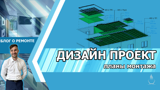 План монтажа — часть больше техническая, чем дизайнерская. На этом этапе создаётся проект для монтажников на настил чернового пола, возведение перегородок из ГКЛ и сооружение потолка. Стяжка.