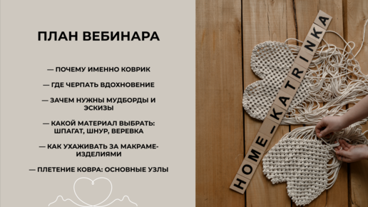 Как сплести макраме-коврик с нуля? Какой расход веревки? Как ухаживать за изделиями в технике макраме? На эти и многие другие вопросы ответы смотрите в статье. С вами Екатерина Курочкина (Katerina_Kureku или Home_Katrinka) и я рада приветствовать вас на моем канале о макраме и творчестве. Сегодня я хочу рассказать подробно о том, как сплести макраме-ковер своими руками. Для начала предлагаю познакомиться чуть поближе. Я провожу еженедельно макраме-занятия для детей, где мы плетем различным изделия в технике макраме: от елочных игрушек до сумок...