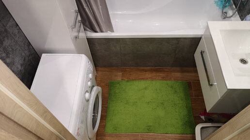 Ремонт ванной комнаты и санузла по ул. Дизайнеров, мкр. Зелёные горки в Томске. Бетон плюс дерево. Плитка Керамин, коллекция Нью-Йорк.