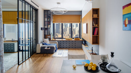 Теплый горчичный, яркий белый, темно-серый и медовый дуб… на первый взгляд кажется, что эти цвета никак не сочетаются, особенно в интерьере, но, как сказал известный российский дизайнер и блогер Артемий Лебедев: «Дизайнер – это тот, кто делает из хаоса порядок». Именно таким дизайнером является Анна Лахно. В евродвушке 44 кв. м. в историческом районе Москвы – Фили она смогла воссоздать великолепный нью-йоркский стиль, соблюдая при этом идею минимализма Какие же основные задачи ставила перед собой...