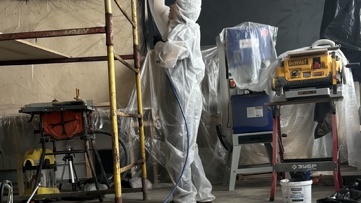 Часто встречаюсь с мнением, что если покрасить потолок в цвет, то он будет давить. Но это не всегда так. Важно понимать, что это акцент, который должен гармонировать со всеми остальными цветами (стены, пол, декор, текстиль), и, если его правильно подобрать, он будет не давить, а "обволакивать" ваше пространство. Например, у нас в столярке мы выкрасили потолок и стены в черный цвет. Процесс можно посмотреть в мои видео: 1 часть и 2 часть. Давайте для начала посмотрим фото ДО: Здесь все стены выкрашены в белый, местами облетает штукатурка, стены частично покрыты декоративной штукатуркой...