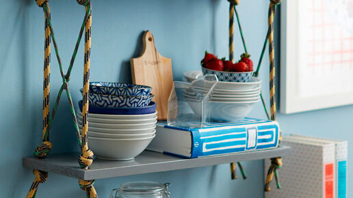 Полки – это не только место для хранения вещей, но и яркий элемент в дизайне интерьера. Покупать этот предмет мебели вовсе не обязательно, его легко можно сделать самому, даже если у вас нет опыта. Один из самых простых и бюджетных вариантов – подвесная деревянная полка на канатах. Она эффектно смотрится в интерьерах в стиле лофт, эко и кантри. Что понадобится Как делать 1. Возьмите доски и отшлифуйте деревесину наждачной бумагой или шлифовальной машинкой. 2. Сделайте на доске разметку карандашом и просверлите в углах доски отверстия перьевым сверлом...