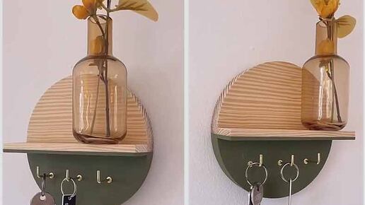 Полка из дерева своими руками в прихожую — идеальный микс функциональности и эстетики. В основе — круглый деревянный диск, а по его диаметру — аккуратная полочка, на которую легко поставить вазу с сухоцветами, оставить очки или смартфон. Под ней — три декоративных крючка, где в идеальном порядке будут ждать ваши ключи. Всё на виду, всё под рукой, и при этом выглядит так, будто это часть дизайнерского интерьера, а не поделка выходного дня. Дерево — материал, который всегда остаётся в тренде. Он тёплый, живой, податливый...