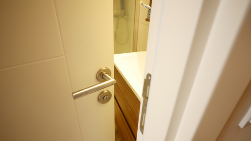 Дверь скрытого монтажа установка в ванной комнате, отделка стыков примыкания к стене.