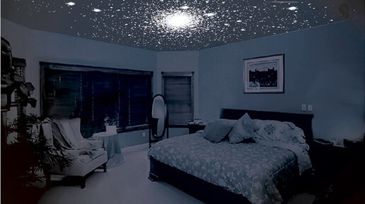 Потолок звездное небо уже не является диковинкой. Есть много способов сделать его в доме. Он будет радовать вас постоянно. Но при выборе такого потолка нужно обращать внимание на интерьер комнаты, учитывать то, что потолок делается не на несколько дней, поэтому нужно быть уверенным, что звездное небо вам не надоест, и вы действительно хотите любоваться им каждый вечер. Наиболее подходящей комнатой для такого потолка будет спальня. Здесь он создаст романтическую атмосферу. Также можно сделать такой потолок в детской комнате, где он добавит уют и сыграет роль ночника...