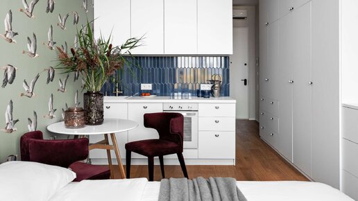 Мини-студия 23 м² с классными обоями и вместительным шкафом