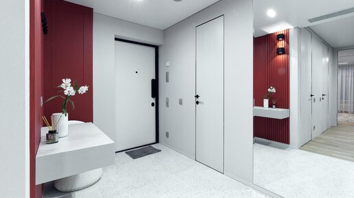 Сегодня спешим обрадовать всех, кто хочет видеть не только красивые визуализации, но и «живой» результат после ремонта. Год назад мы публиковали дизайн-проект, а сегодня показываем готовый ремонт в этой квартире. Заказчик хотел интерьер современный и лаконичный, но в то же время харизматичный и комфортный для жизни. При выборе акцентов важно было найти что-то яркое, запоминающееся, но при этом классически благородное. Так мы пришли к выбору двух наших акцентных цветов – бордо и золото. Яркая стена в прихожей была одним из запоминающихся объектов проекта...