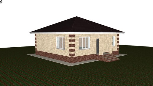 Дом общей площадью -92 кв м, полезная площадь дома - 89 кв м, жилая -38 кв м. Габариты дома (без крыльца) - 10.00х11.25 м Одноэтажный дом квадратной формы, выполнен из газобетона толщиной 300 мм, отделка наружных стен -штукатурка. Строительство здания осуществляется на свайно-ростверковом фундаменте. Перекрытие - по деревянным балкам. Покрытие кровли - металлочерепица. Чтобы узнать стоимость проекта и стоимость строительства дома, а также более подробные его характеристики проходите по ссылке => ПРОЕКТ К-161 Конструкция крыши у дома - простая двухскатная...