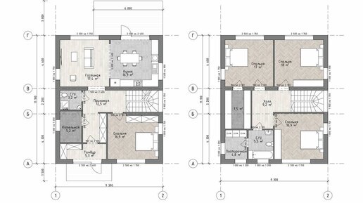Проект двухэтажного дома с 4 спальнями