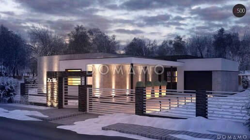 Современный комфортабельный дом для семьи из 3-4 человек. Здесь будет удобно проводить время всей семьей и с гостями, уютно отдыхать, легко поддерживать порядок и вести хозяйство. Познакомимся с проектом поближе. Дом строится из кирпича, облицовывается в технике “мокрая штукатурка” и фасадными панелями. Плоская кровля стильно смотрится и уменьшает площадь затенения участка, а длинное крыльцо под крышей защищает входную дверь от осадков. По длине двух фасадов предусмотрены террасы: крытая и открытая...