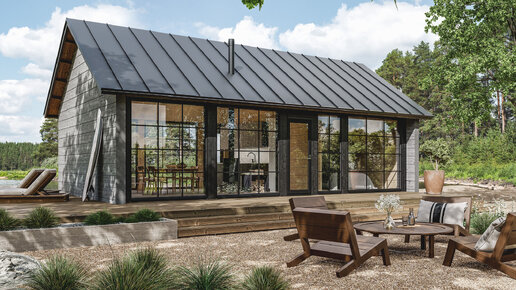 Деревянная вилла с панорамным остеклением - это 1,5-этажный дом для отдыха. Отличный вариант для сдачи в аренду или строительства под номер загородного отеля. Общая площадь 86 – 86,5 м2