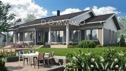 В этом одноэтажном каркаснике с комфортом разместится семья из 4-5 человек. 4 полноценных спальни, гостиная совмещенная с кухней, большая крытая терраса на заднем дворе — здесь есть все для полноценной жизни за городом! Планировка почти идеальная — просторные жилые комнаты, отдельная кладовка, котельная и постирочная, два санузла. Есть даже сауна! Внешний вид дома радует глаз: деревянная вагонка отлично впишется в ландшафт, а большие окна наполнят жилище светом. 💳 Стоимость проекта: 34 000 руб. (на момент публикации данной статьи)...