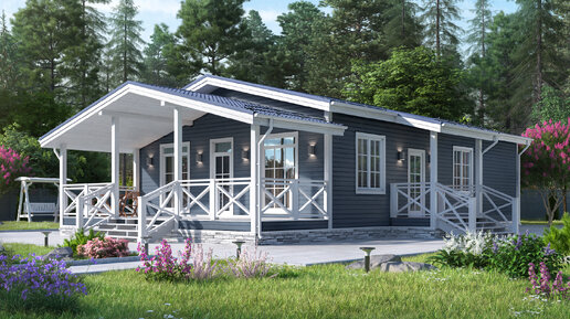 Проект одноэтажного каркасного дома с 3 спальнями - до 100 кв м