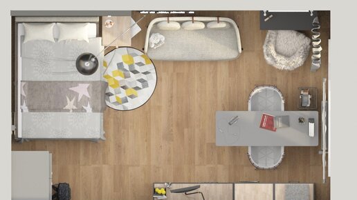 В проектировании комнаты для подростка важным является принцип зонирования. Необходимо грамотно визуально разделить пространство, чтоб удобно расположить рабочую зону, зону отдыха и спортивный уголок, как в нашем проекте. Эргономика играет не последнюю роль, так как комната должна быть максимально удобной для проживания. Выбор цветовой палитры один из важных этапов при создании дизайн-проекта. В данном интерьере создают идеальный тандем бежевый с глубоким синим, подкрепленные акцентами в виде декоративных настенных панелей...