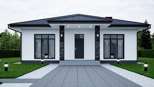 Проект одноэтажного дома с 2 спальнями, отдельной гостиной, кухней столовой, санузлом и котельной