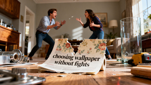 «Ну вот эти нормальные». «Нормальные? Они как в подъезде у моей бабушки». «Зато практично». «Практично жить в гараже, а я хочу домой». И всё, понеслось: тон чуть выше, слова чуть острее, обида чуть глубже, чем должна быть из-за рулона бумаги с рисунком. Самое обидное, что вы пришли в магазин не за дракой. Вы пришли за стенами, которые будут радовать. За тем самым «уютно», которое в голове выглядело как картинка. А в реальности почему-то выглядит как ваш партнёр, который упёрся в «бежевенькие» и не слышит ничего вокруг...