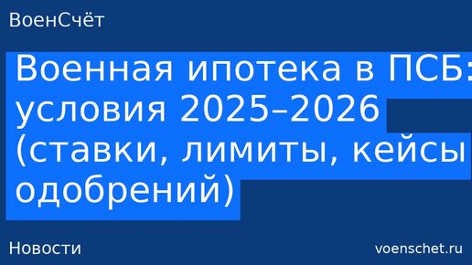 Военная ипотека в ПСБ: условия 2025–2026 (ставки, лимиты, кейсы одобрений)