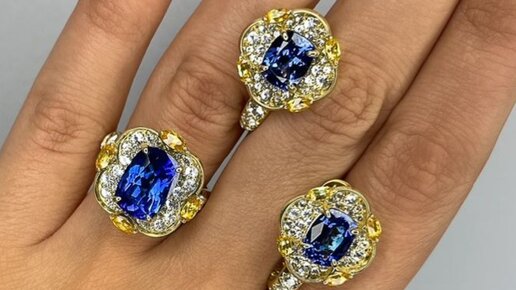 Гарнитур с танзанитами и сапфирами "Заснеженные фиалки".