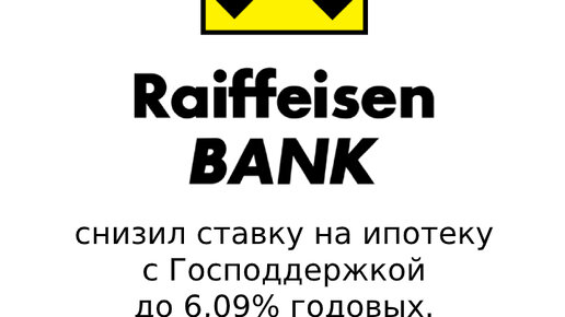 Райффайзен Банк снизил ставку по ипотеке с Господдержкой с 6,5% — до 6,09% годовых
