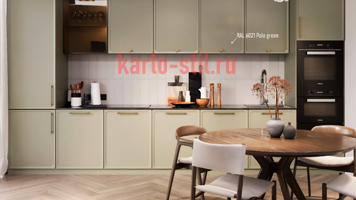 Дизайнерская кухня с фрезерованными фасадами из МДФ в матовой эмали в цвете RAL 6021 pale green: элегантность и современность!