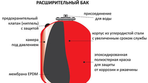 Расширительный бак Название «расширительный бак» говорит само за себя. Это бак в котором объем воды увеличивается за счет притока из системы отопления при нагревании теплоносителя, и переходит в систему отопления при остывании. Открытый расширительный бак для отопления. В системе с естественной циркуляцией теплоносителя используется открытый расширительный бак и вода течет под действием своего веса и гравитации. В гравитационной системе отопления существует лишь то давление, которое соответствует высоте нахождения открытого расширительного бака...