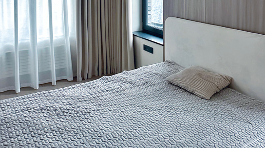 Лёгкий, струящийся, он мягко рассеивает дневной свет, наполняя спальню воздухом и ощущением спокойствия...