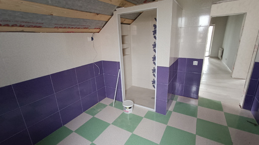 Мы переехали из квартиры в свой дом в 2022 году. В этой статье будут зарисовки о том как мы ремонт внутри дома делали, и как у нас не сложилось нормально с выбором плитки в ванные комнаты. В предыдущей статье я рассказывала о том, какие мы провели работы на участке перед тем, как заехать: Выбор обоев был для нас достаточно прост. Мы фоткали все понравившиеся обои в магазине, чтобы потом еще дома подумать и решить окончательно. Пришлось немного подумать, как правильно обклеить эту мансардную часть в комнате...