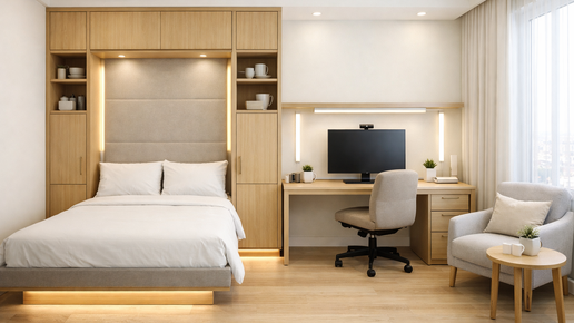 Гостевая‑кабинет 10 м² в СПб: откидная кровать‑шкаф 160×200, рабочее место
