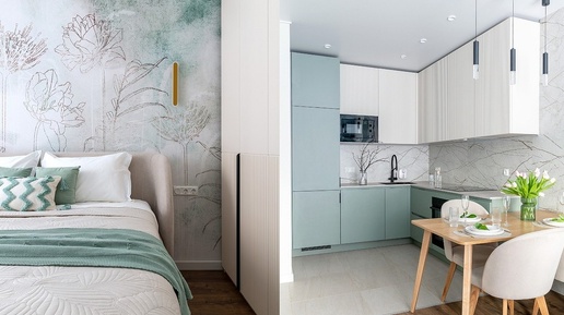 Сохранив отделку пола и оформление ванной и не меняя планировку, смогли создать стильный и продуманный интерьер. Фото: Мария Иринархова Владельцы этой однокомнатной квартиры — молодая семья. К дизайнеру Анне Северенчук пара обратилась с запросом уместить в небольшой квартире полноценную кухню со всем необходимым (семья любит готовить), обеденную зону для приема гостей, рабочее место, так как владелица часто работает из дома, и много систем хранения. Квартира была с ремонтом от застройщика, и перепланировка не предполагалась...