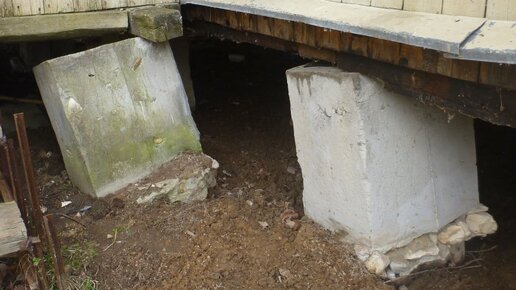 Со столбиками под домом могут возникать проблемы. Столбики могут проседать, выпирать (выпучиваться), заваливаться, сдвигаться, рассыпаться или разваливаться на влажном грунте. Столбчатый фундамент представляет собой несущие опоры из кирпича, строительных блоков, монолитного бетона, труб, заполненных раствором, покрышек, заполненных песком, столбов из бревен или других видов и из материалов. При этом опоры не связаны между собой достаточно жестко. Можно конечно ремонтировать-подправлять каждый сезон как эта женщина с домкратом и золотыми руками...