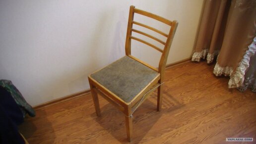 Реставрация деревянного стула с мягкой сидушкой, замена оббивки.