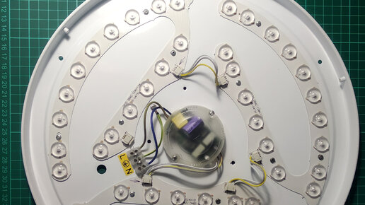 Знакомый принёс светодиодный светильник, управляемый с пульта. Жалуется, что "моргает". Вот, что под плафоном. Вроде, как бы люстра работает, режимы работы с пульта меняются. Но, люстра "моргает", и, потому, пользоваться невозможно. Вот плата управления. Сомнения вызвала треснувшая оболочка конденсатора. Потому заменил конденсатор. Но это не помогло. Потом пропаял всю плату, ...места пайки вызвали сомнения, не помогло... Пока работал с платой, поочерёдно оторвались все провода, пришлось их перепаивать заново...