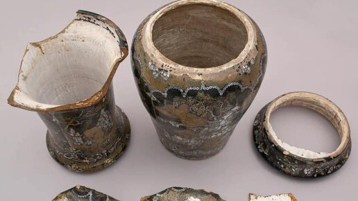 В реставрационную мастерскую керамики поступила необычная ваза с четырьмя резервами инкрустированными перламутром и серебряной фольгой (Китай, XIX век) из собрания Кяхтинский Краеведческий Музей.