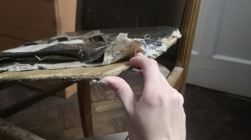 Реставрация мебели для меня - новое хобби, которое не хочется бросать)) Это меня успокаивает, бодрит и помогает отвлечься от тяжёлых рабочих будней. После окончания в начале ноября курсов по реставрации, я поняла, что мне хочется в этом задержаться подольше. (Про курсы и мой первый отреставрированный стул можно почитать в статье ниже.) Поэтому я оплатила коворкинг в той же мастерской и притащила туда брата-близнеца моего первого стула) На нем сохранилась наклейка, так что можно было узнать, что он выпущен на "Ленинградской мебельной фабрике #1" в 1959 году...