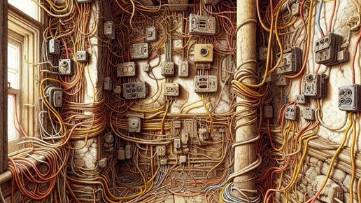 Ретро‑проводка — это когда электрические провода не прячут в стены, а оставляют на виду. При этом их оформляют стильно, в «старинном» или индустриальном духе. Получается не просто проводка, а часть дизайна комнаты. Итог: ретро‑проводка — это способ сделать интерьер интереснее и уютнее...