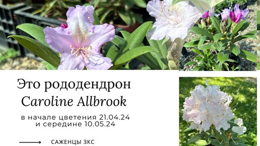 Из лилового в жемчужно-розовый за 20 дней - это рододендрон Каролина Альбрук. Соцветия английского рододендрона Caroline Allbrook размером 12 см сформированы из 12 — 16 цветков. Каждый достигает 6 см в диаметре. Обильное, пышное цветение длится с мая по июнь. Побеги густо облиственны крупными блестящими темно-зелеными листьями. Кустарник высаживают как одиночными экземплярами, так и в групповых посадках. Великолепен рододендрон на фоне хвойных растений, которые прекрасно оттеняют его царственную красоту...