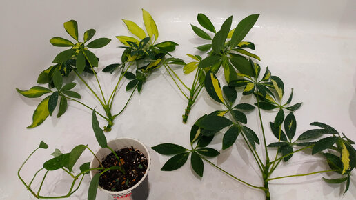 На днях приобрела из частной коллекции новые растения: шеффлеру вариегатную срезами и Сциндапсус Себу Блю черенком. Давно присматривалась к этому сорту сциндапсуса. Это лиана, будет иметь стреловидные сизо-голубые листья. Разрезы появятся уже у взрослых листьях. Если формировать вертикально на тотеме лист будет крупный и резной. Сразу обработала от болезней и насекомых Фитолавином 1 мл...