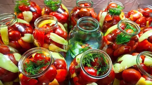 Пожалуй, заготовки из помидоров получаются самыми вкусными, на мой взгляд. А зимой пряный аромат от красных томатов, закрытых с зеленью и чесноком, разносится по всей кухне, быстро разжигая аппетит у любителей. Вашему вниманию отличные рецепты заготовок помидоров на зиму на любой вкус. Стоит тщательно подготовиться, немного времени и зимой вы будете наслаждаться вкусными томатами из баночек. Безусловно, помидоры требуют к себе тщательного внимания, что касается стерилизация банок и крышек. Это необходимо, так как я считаю их более капризным овощем в сравнении с маринованием огурцов...