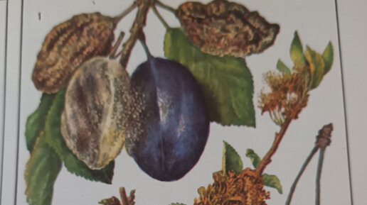 Повсеместно встречается грибное заболевание сливы, вишни, абрикоса, персика и др. косточковых культур, вызывающее загнивание плодов и так называемый "монилиальный ожог" цветов и ветвей. Возбудитель зимует в виде грибницы на поражённых ветвях и мумифицированных плодах. Весной во время цветения косточковых пород появляется обильное спороношение гриба. Споры попадают на цветки и прорастают. Болезнь распространяется очень быстро, поражая близлежащие части растения, которые вскоре буреют и увядают...