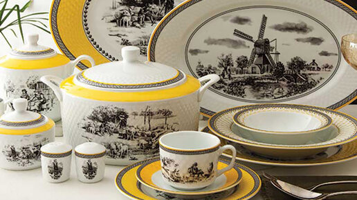 Встречайте новую коллекцию фарфоровой столовой посуды Village бренда Zarin с рисунками на тему английской сельской жизни. Очаровательные пасторальные сюжеты выполнены в стиле черно-белой графики и дополнены орнаментом с желтой каймой. Коллекция Village включает предметы для сервировки обеда и чаепития: супница, блюда для закусок или десертов, тарелки, салатники, а также заварочный чайник, молочник, сахарница, чайные чашки и блюдца. По традиции, вы можете приобрести каждый предмет коллекции отдельно и таким образом составить необходимый вам набор посуды...