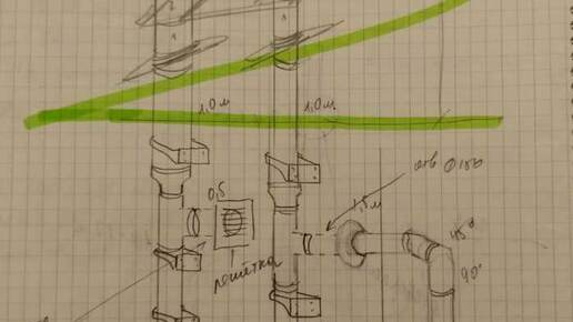 Привет. Расскажу как мы монтируем вентканал и дымоход для напольного газового котла. Сегодня речь пойдет про приставные дымоходы из сэндвич трубы, для одноэтажных домов, с выходом на "скатную" сторону кровли. По разным причинам иногда требуется разместить их именно там где это меньше всего удобно: выход из стены почти под самый карниз (полка), собственно мешает и сам карниз, и зацепиться не за что, и поднимать на уровень конька, и как это все закрепить? Разумеется, самое надежное это сварить мачту, закрепить ее к стене, и на ее основе собрать дымоход и вентканал...