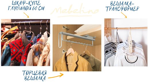 Первое, что делаем – замеряем ширину верхней одежды на плечиках. Выходит 50-55 см. Если вам будут делать шкаф-купе на заказ, можете выбрать любую глубину в пределах 40-90 см (меньше – почти ничего не влезет, больше – придется залазить внутрь, чтобы достать вещь). А для тех, кто покупает готовую модель, есть 2 варианта: 1. Шкаф-купе глубиной 60 см – в него идеально помещается верхняя одежда как на вешалках, так и в сложенном виде...