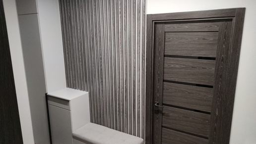 Распашной шкаф в прихожую с рейками из ЛДСП EGGER