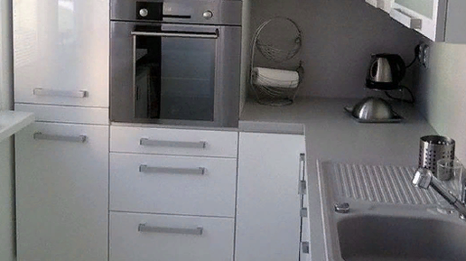 Даже для малогабаритных кухонь хрущевок в сети можно встретить немало проектов, где одна сторона углового гарнитура "занята" шкафами-пеналами. Насколько это целесообразно? Тут мнения ожидаемо разделяются. Но мы ведь проектируем под себя, а не для того, чтобы другие одобрительно качали головой. Как правило, пеналами завершают ряд кухни и чаще всего используют для встраивания бытовой техники колонной. Обязательно "проверяйте" уровень встройки верхнего прибора (как правило, это СВЧ). Иногда удобнее сделать так, как на фото, хотя и визуально смотрится "низковато"...