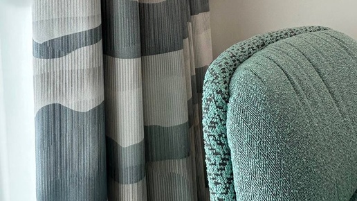 Эта спальня словно обрела собственный пейзаж — силуэты гор на плотном хлопке. Но эти горы не за окном, а на портьерах, которые подчёркивают современный стиль интерьера и придают ему глубину 🏔️ Мы выбрали ткань с живописным печатным рисунком в сложной припылённой гамме. В ней нет кричащих контрастов — только тонкие нюансы, которые «подружились» со всеми элементами комнаты: оттенками стен, текстурами мебели, даже с мелкими аксессуарами. Здесь нет случайных решений: каждый тон работает на единую историю пространства...