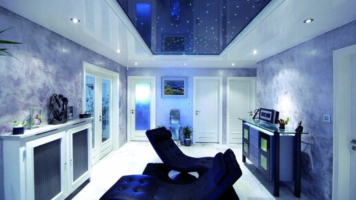 Определиться с цветом натяжного потолка очень непросто. Имеется огромное множество оттенков, которые можно использовать в качестве основного цвета натяжной конструкции, так много, что даже можно запутаться и потеряться в своих предпочтениях. Но все, же кто-то верен традиционному белому цвету, а кто-то хочет сделать комнату необычной и стильной. Если вы относитесь ко второму типу людей, то присмотритесь, к синим натяжным потолкам, фото уже готовых интерьеров есть на нашем сайте. Вся реализованная глубина синего цвета предает комнате нотку аристократичности и гламура...