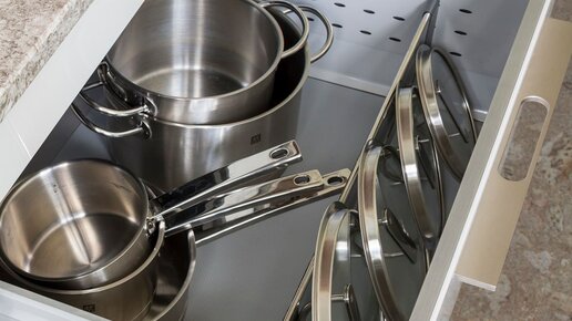 Теперь у меня всегда есть место для крышек от кастрюль. Больше никакого беспорядка! Делюсь идеями умной системы хранения