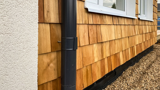 Для наружно отделки скандинавского дома можно использовать неограниченный перечень фасадных решений. В том числе, довольно редких. Расскажем об одно из них немного подробнее. Этот дом в Московской области отделан дранкой из лиственницы – натуральным материалом «с историей». Сегодня он почти забыт, но раньше использовался повсеместно. Им покрывали крыши и стены домов, а также купола церквей. С дранкой фасад получается по-настоящему живым...
