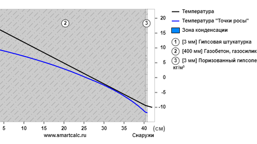 Фундамент готов. Пора позаботиться о продолжении стройки и рассчитать необходимое количество материала для продолжения. Как помните, для примера мы строим дом 6*8 метров. Толщина стены будет 40см. Материал самый распространенный автоклавный газобетон D500. Согласно калькулятору https://www.smartcalc.ru/ Идеально было бы взять толщину 415 мм. При этом соблюдаются условия: Ограждающая конструкция удовлетворяет санитарно-гигиеническим нормам по тепловой защите. Ограждающая конструкция удовлетворяет нормам по тепловой защите вне зависимости от иных требований...