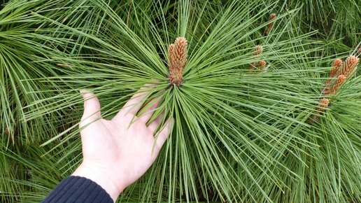 Да, эта сосна с очень огромным игла и существует, а также может расти у нас, хотя у нас почти каждая сосна может расти, но обязательное условие роста в наших краях, это выдерживание, как минимум минус 20 градусов, а также питательный грунт, но все таки перейдём к самой сосне Джеффри. Сосна Джеффри реально ограмная, не только иглами , но и шишками, как они только людям на головы не падают, а то бы количество смертей увеличилось бы в два раза. Даже у этой огромной щищки семена с десяти рублевую монету...